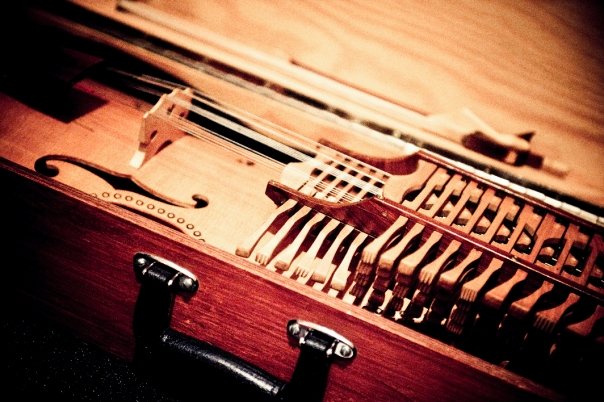 A fiddleharpa is a variation on the Swedish Nyckelharpa: a stringed instrument dating back to the fourteenth century. It consists of sixteen total strings: four are bowed, and twelve are resonant. A keybox is used in place of the fretboard, with keys in half-step intervals.